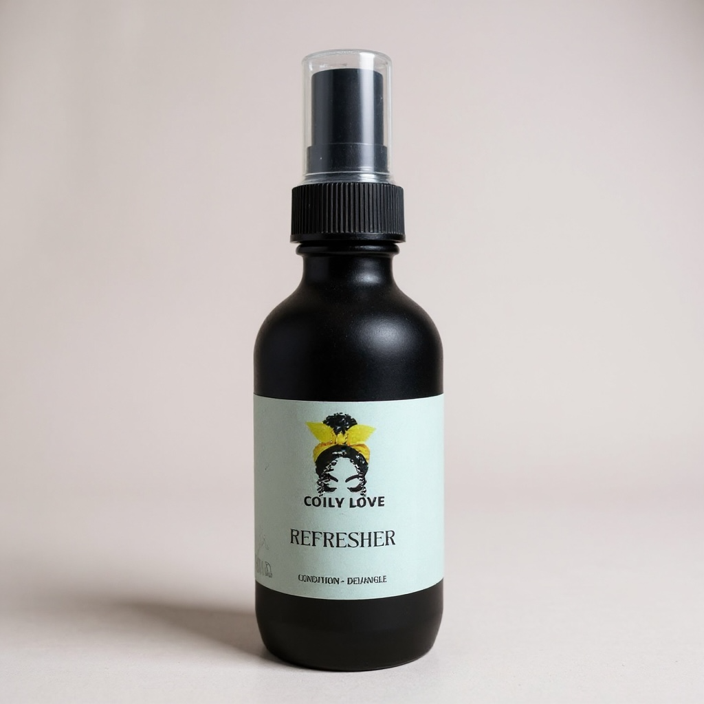 Revive and hydrate your hair from root to tip with our Refresher Spray. Infused with natural ingredients, this lightweight formula nourishes your scalp and tresses, leaving them soft, refreshed, and moisturized. For best results, pair with our Coily Love Growth and Beurre to lock in moisture and boost growth.